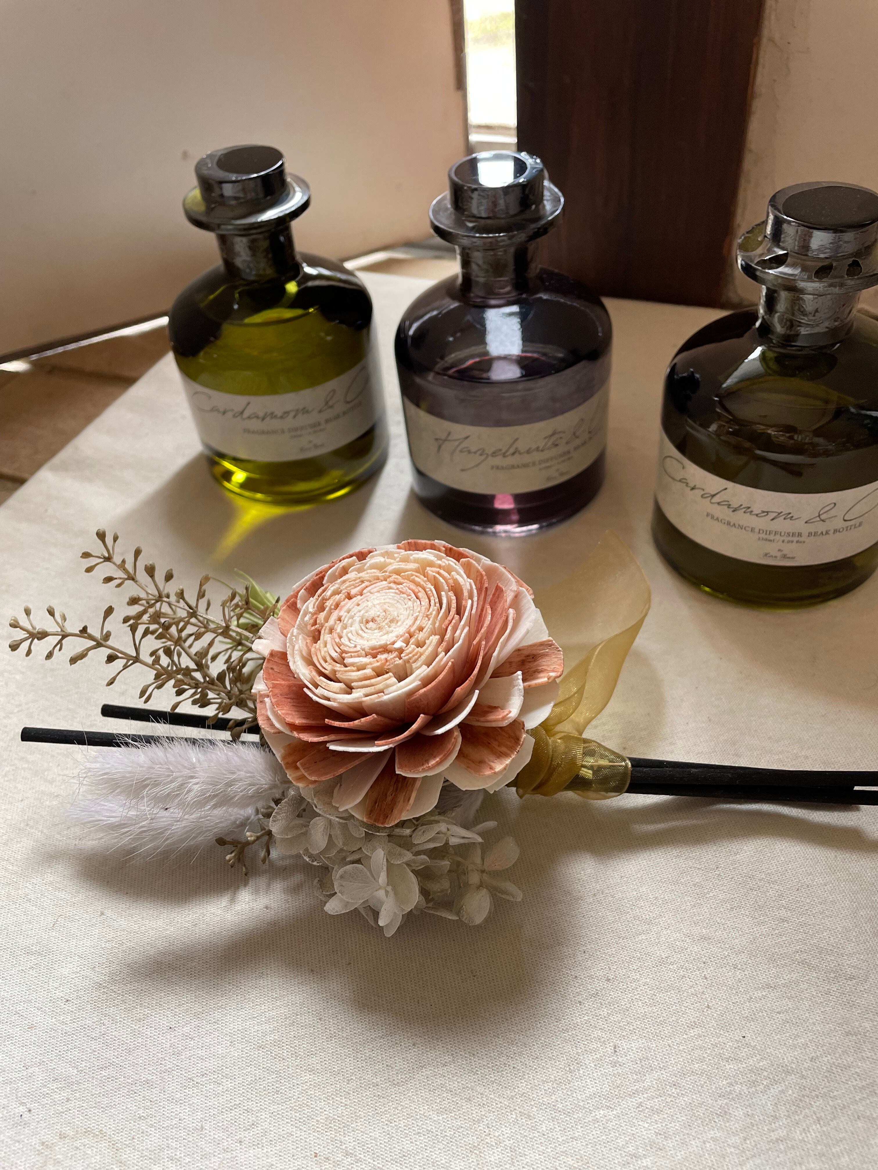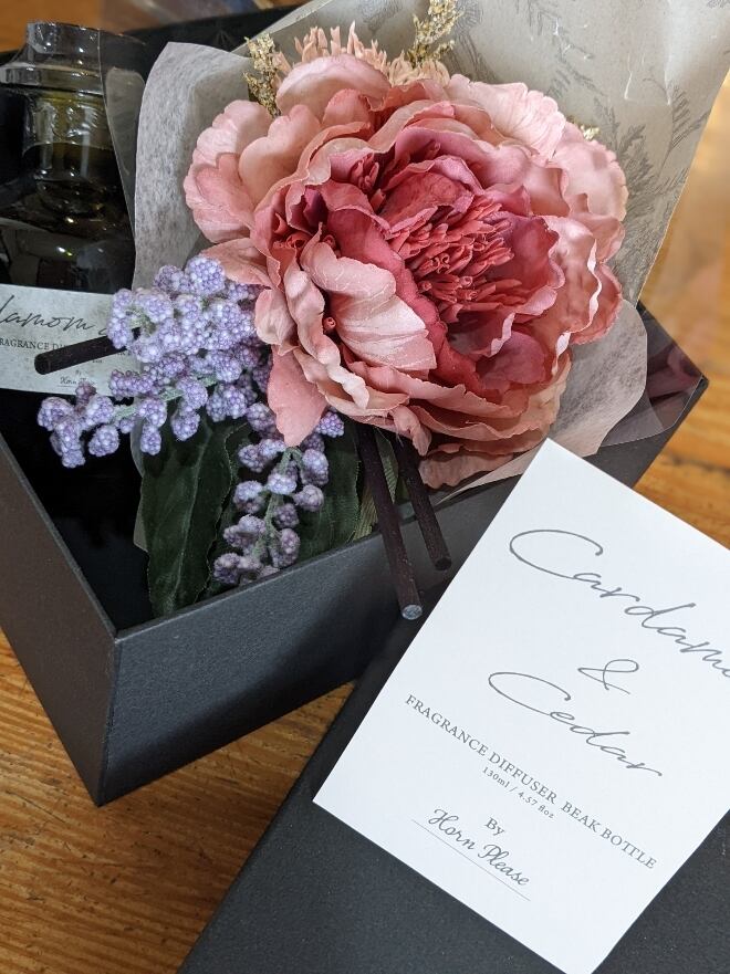 いつも頑張っている女性へ極上の自分時間と視覚と嗅覚からも幸せを感じられるお花のディフューザーのプレゼント。