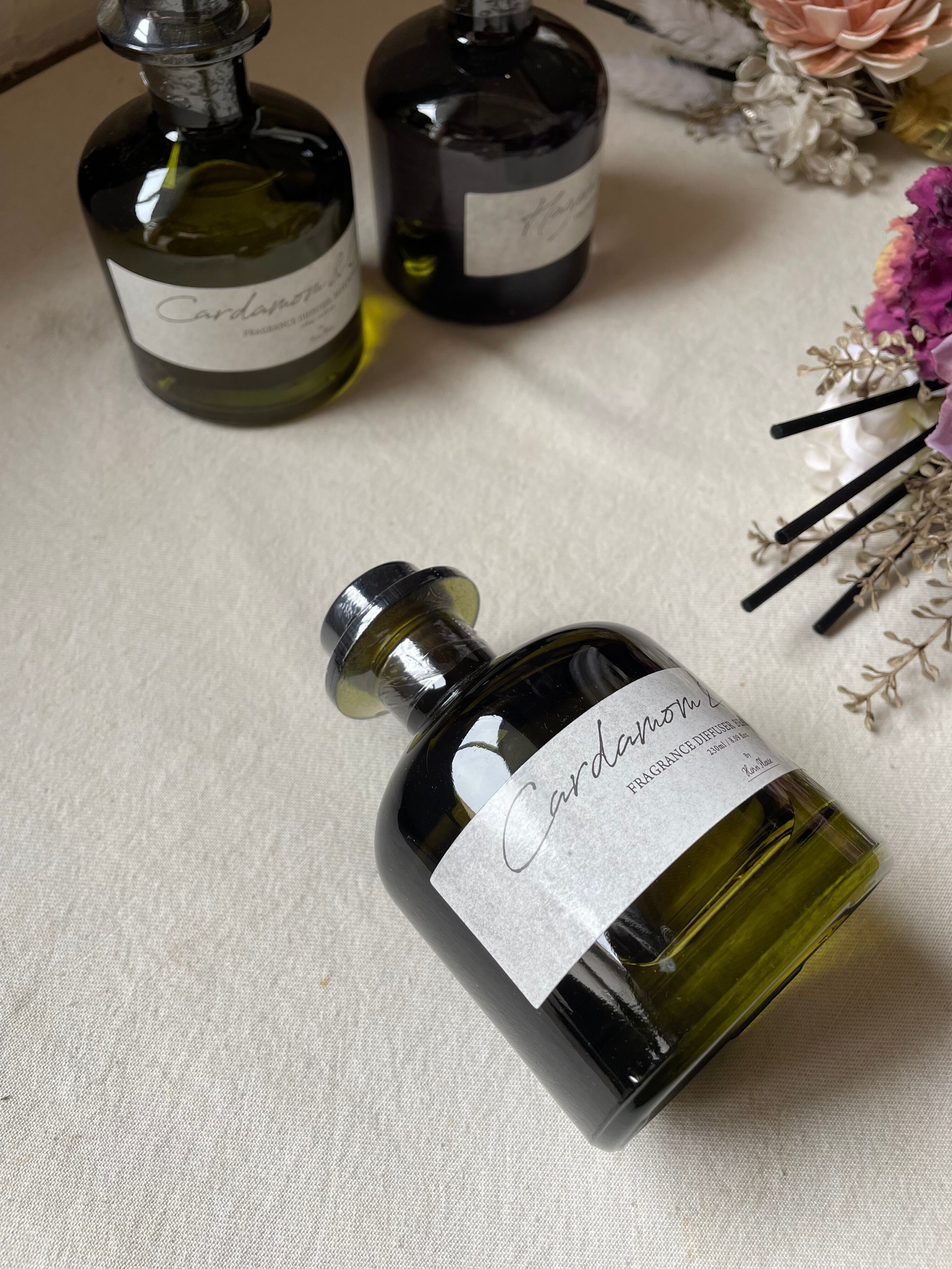 アロマの入った瓶にふわわオリジナルのアーティフィシャルフラワーのリードを差し、お部屋全体で香りを楽しめます。