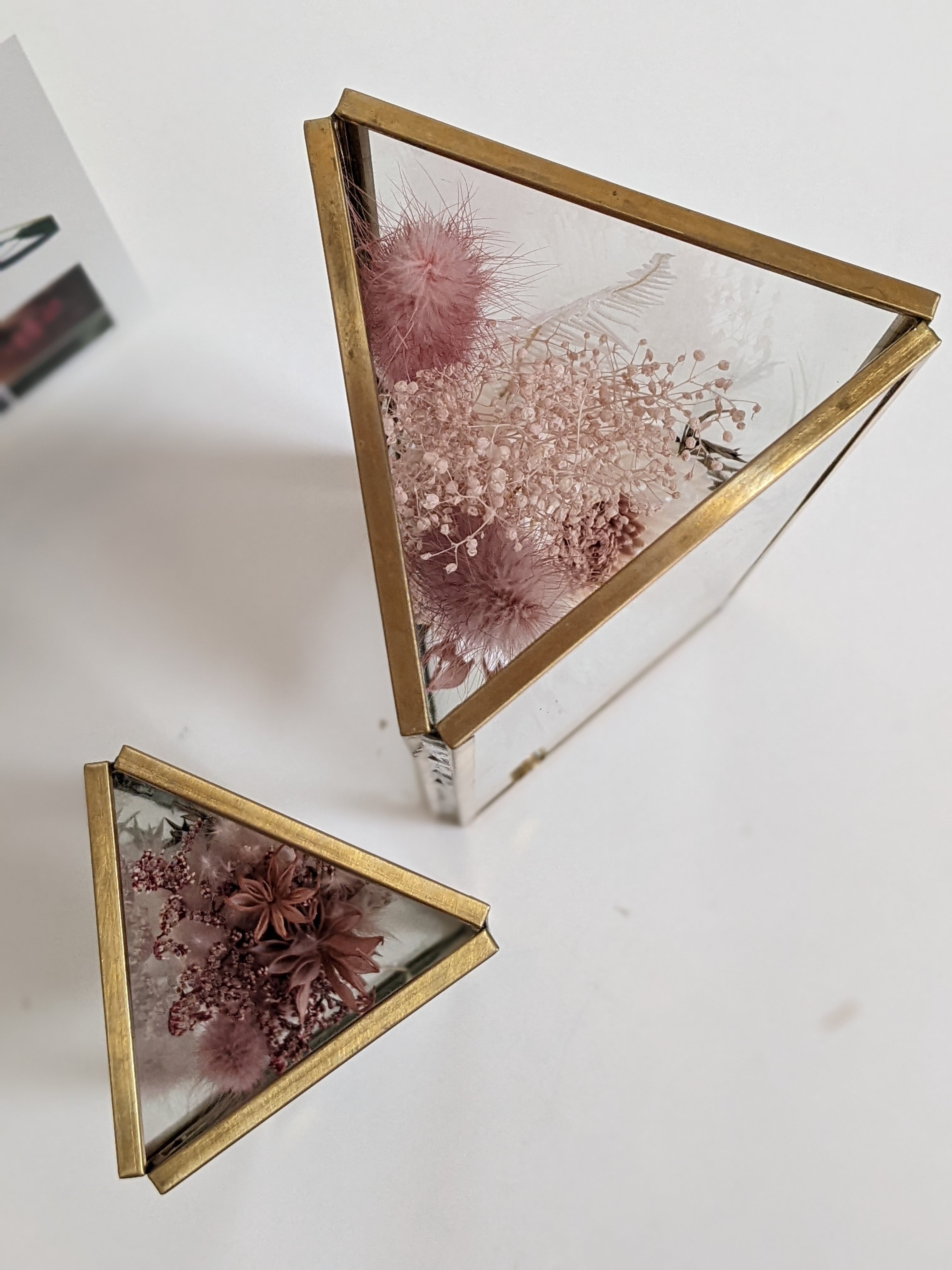 三角の真鍮のガラスベースの中に